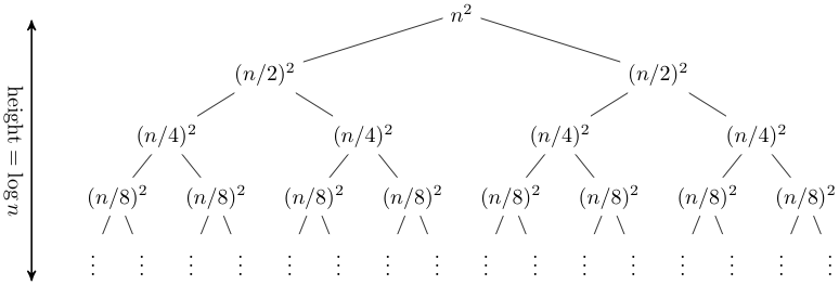 The above photo demonstrates how different branches of recursion can be visualized when describing a particular recurrence relation. This is a great exercise for breaking down and computing the time complexity of a particular algorithm.